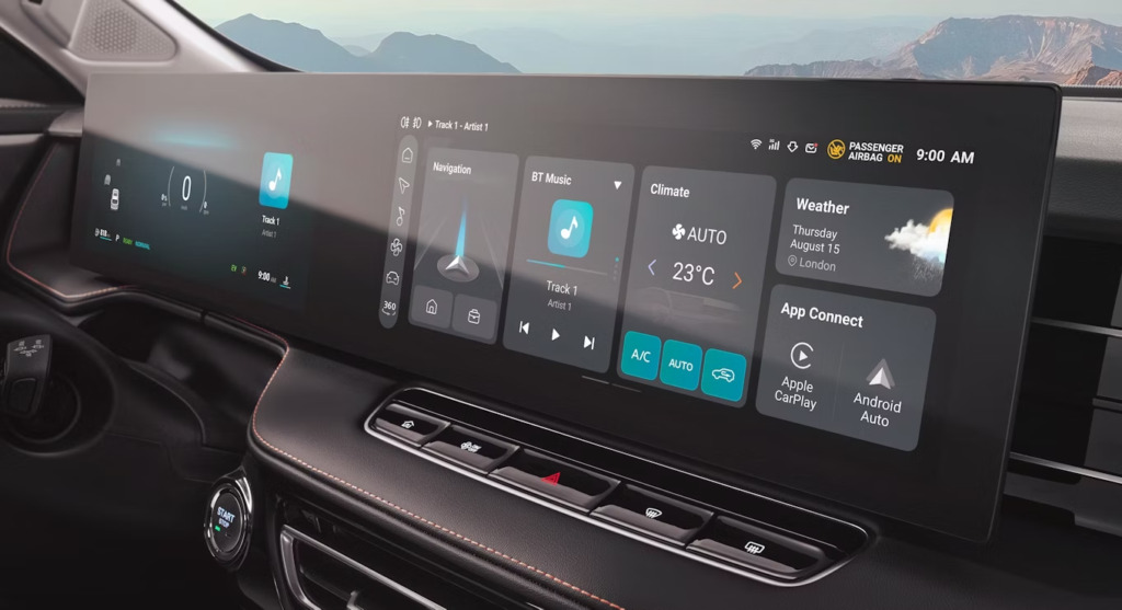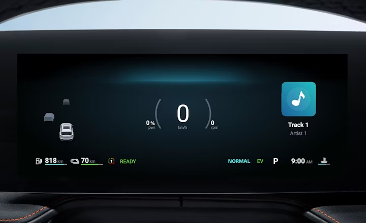 El MG HS Hybrid+ incorpora dos pantallas panorámicas de 12,3” que elevan la experiencia a bordo: una para el sistema de infoentretenimiento y otra como cuadro de instrumentos totalmente digital. Todo, desde la navegación hasta los datos de conducción, se muestra con máxima claridad y estilo.